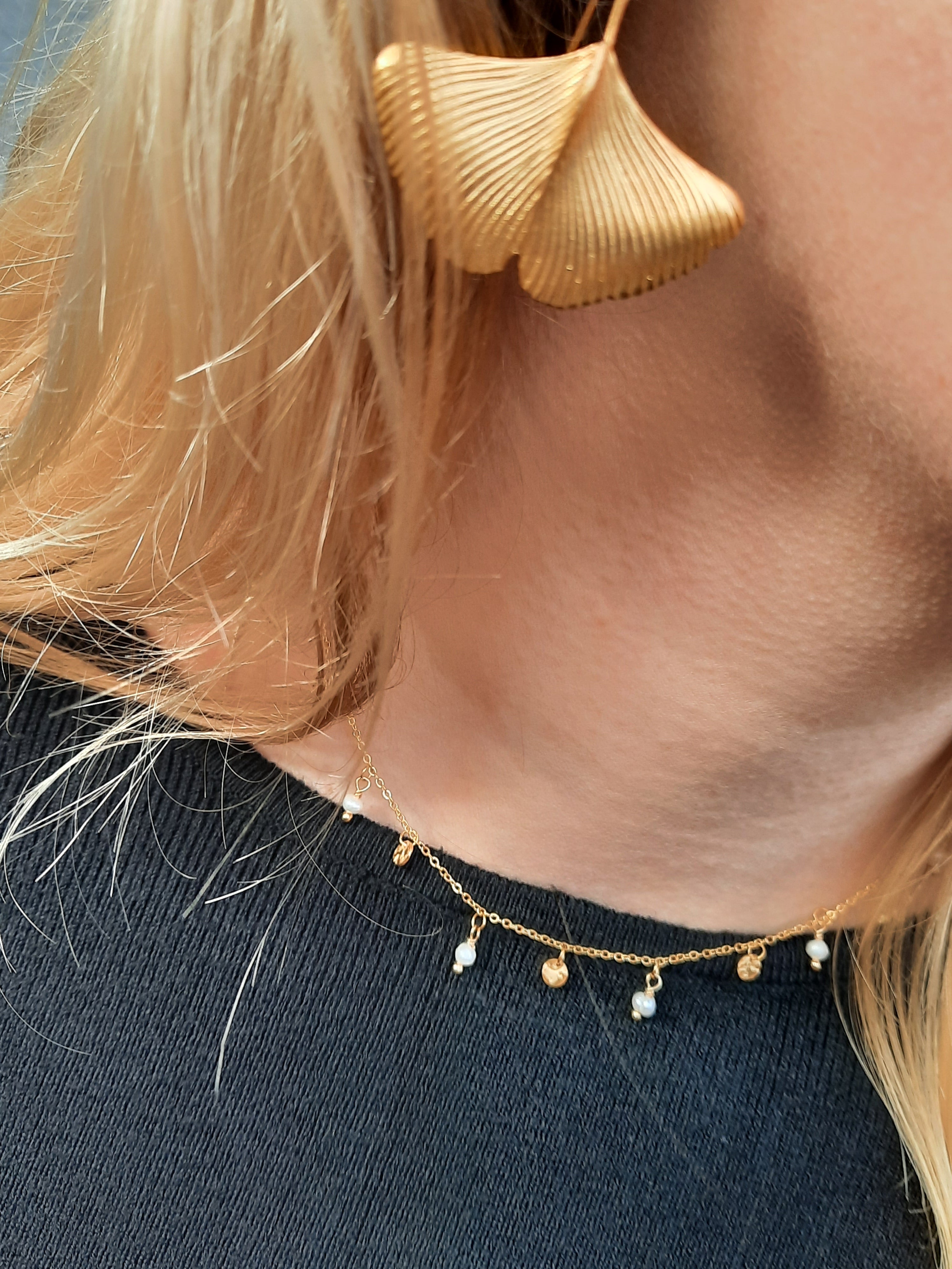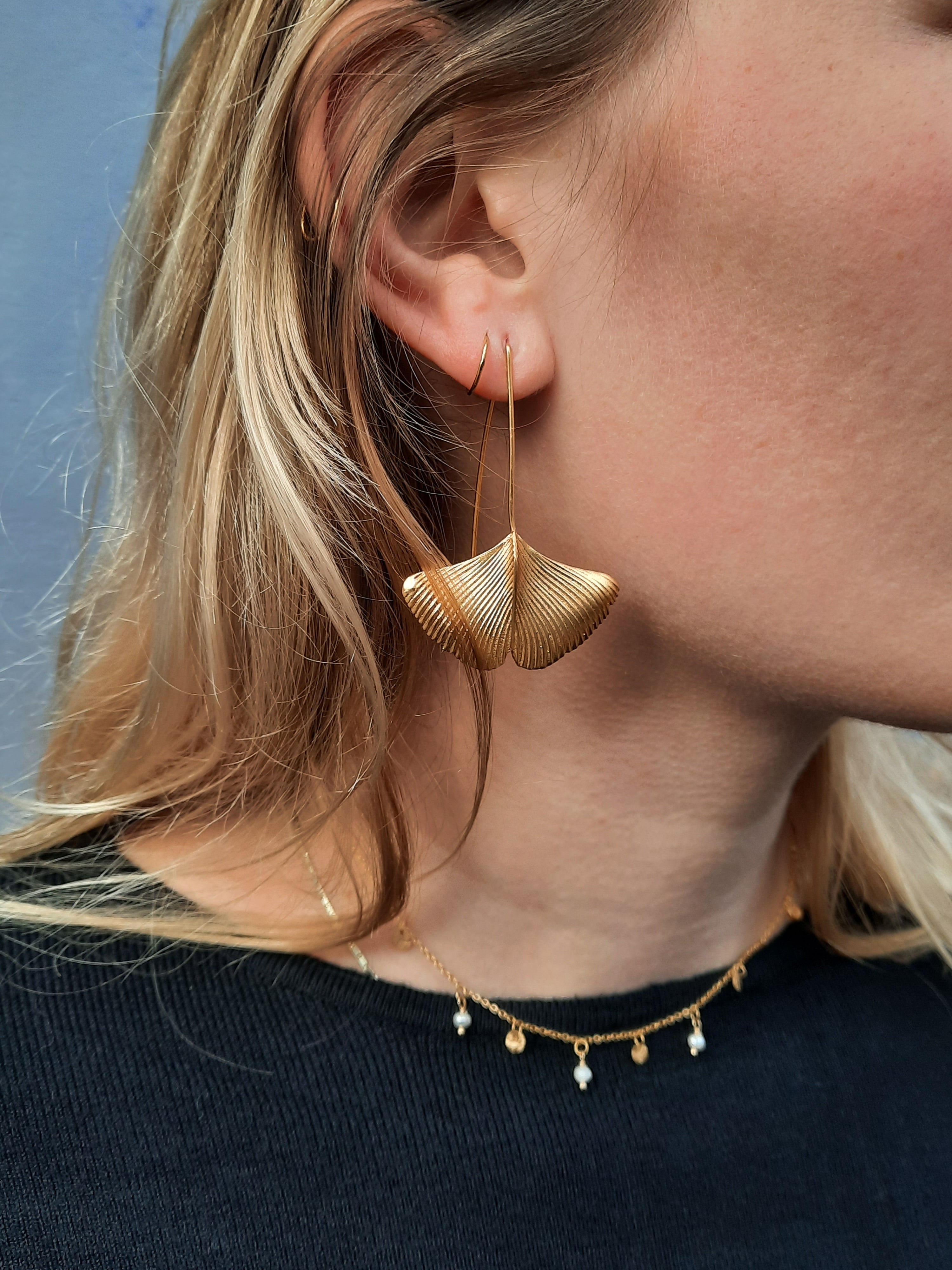 Messing vergulde Ginko bladvormige oorbellen.