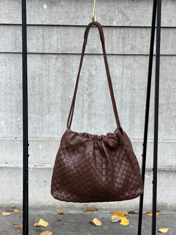 zachte leren gevlochten zwarte tas is in bestelling en wordt verzonden zodra het weer op voorraad is