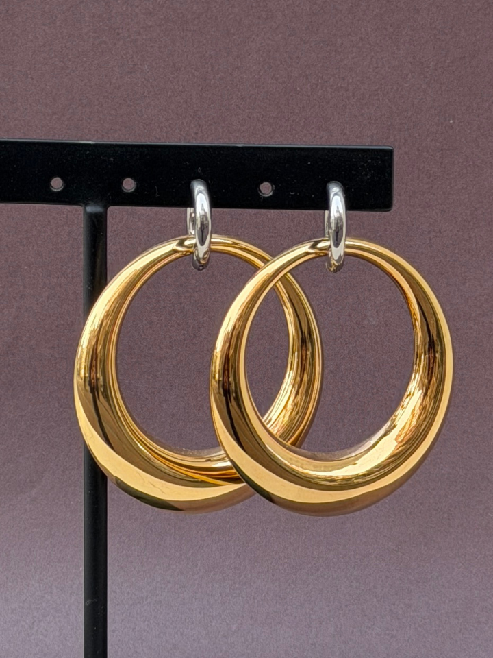 Stainless steel hoops with gold and silver combined.