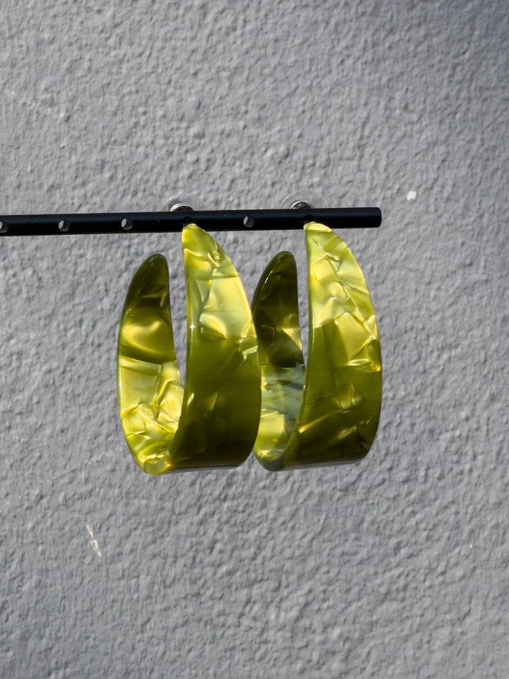 Plastic green earrings, metal parts are stainless steel. Elegant style, easy to wear every day and simple enough to pair with any outfit, from casual to dressed up.