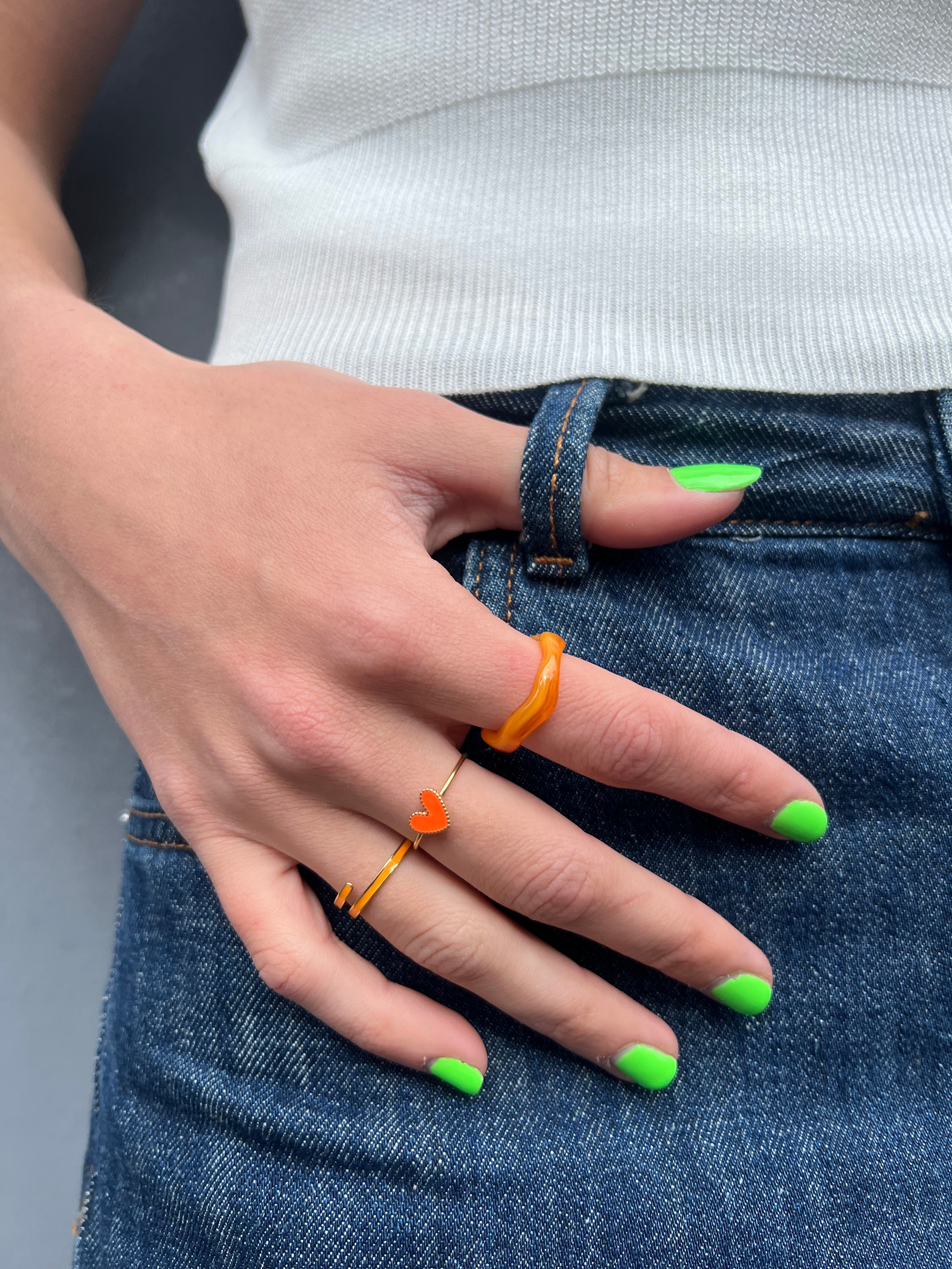Heart ring, stainless steel, in orange