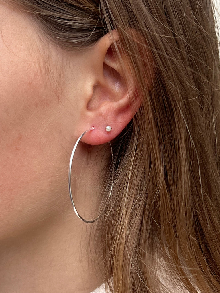 Thin sterling silver hoops, 5 cm.