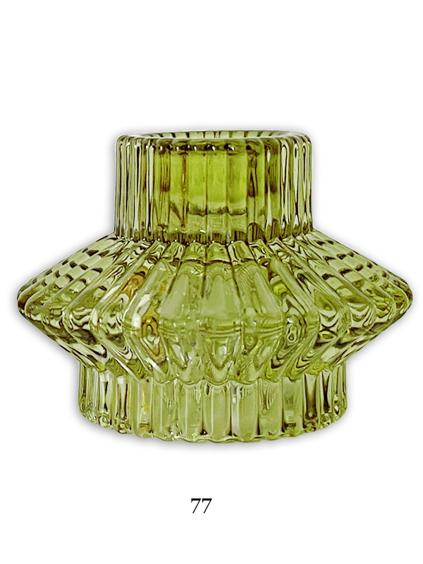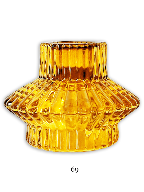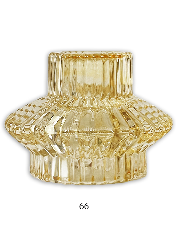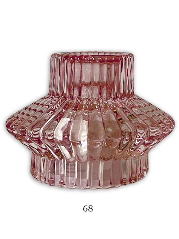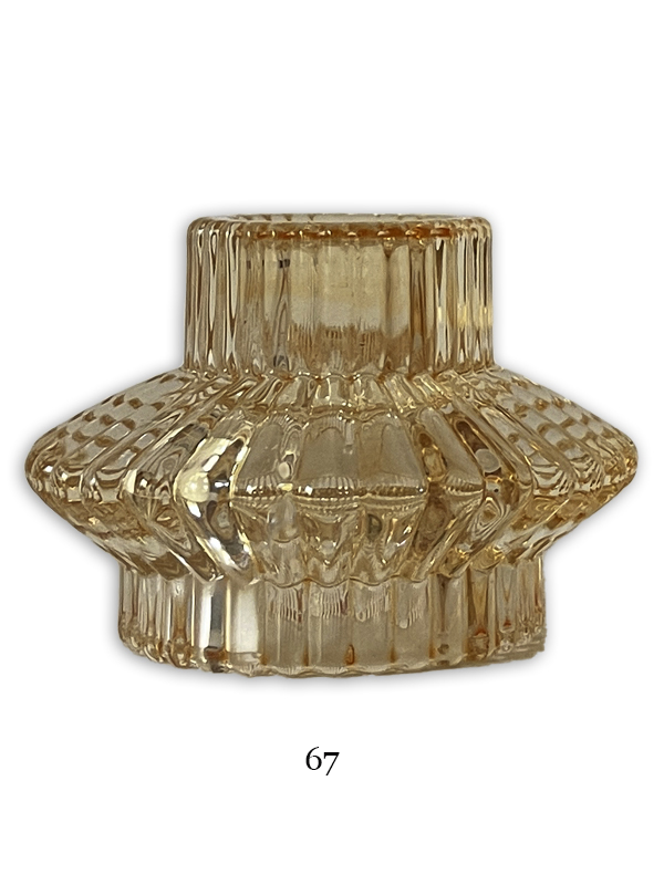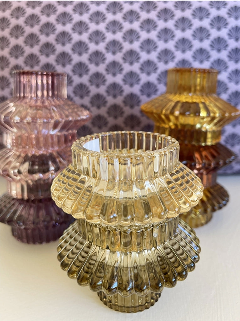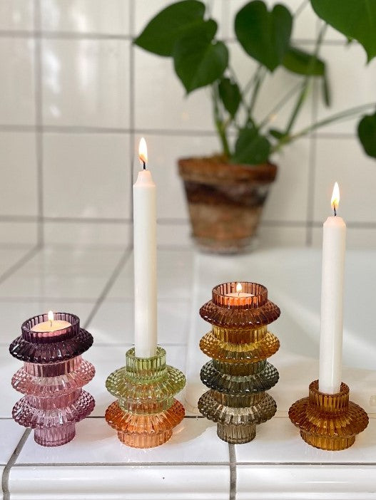 Glazen kandelaars / kaarsenstandaards; een theelichtje of een gewone kaars? In deze stapelbare kaarsenstandaards kunnen beide; een kwestie van omdraaien.